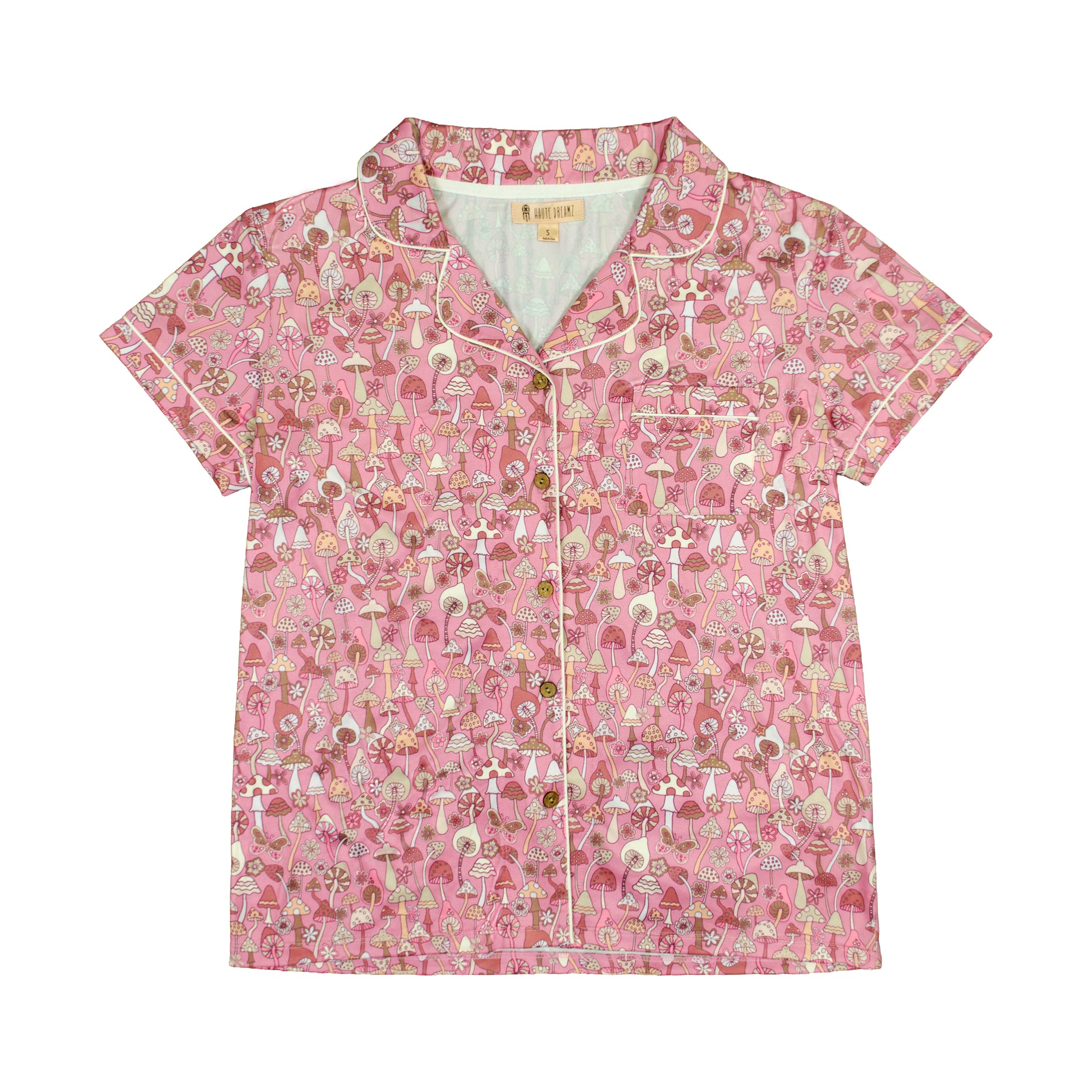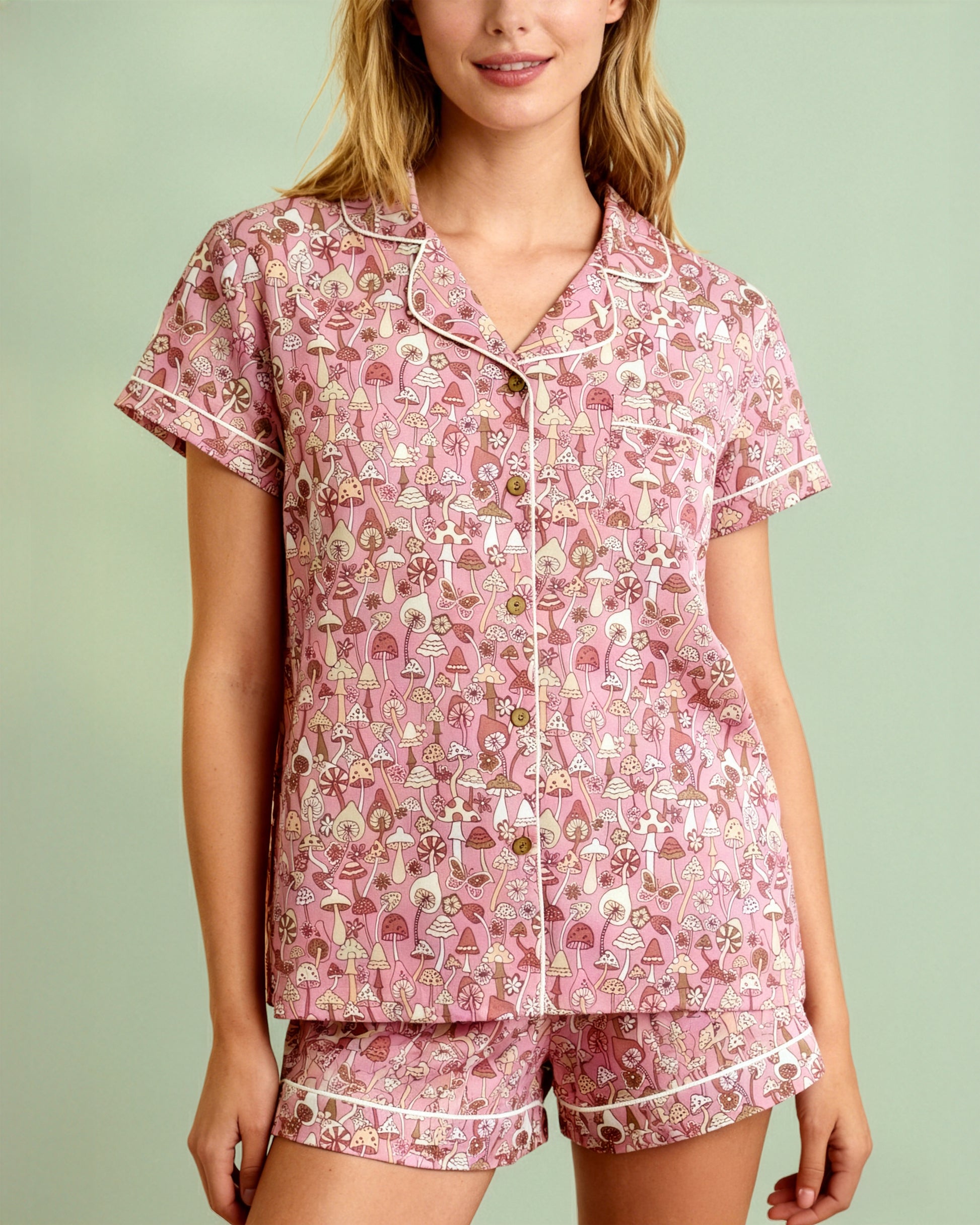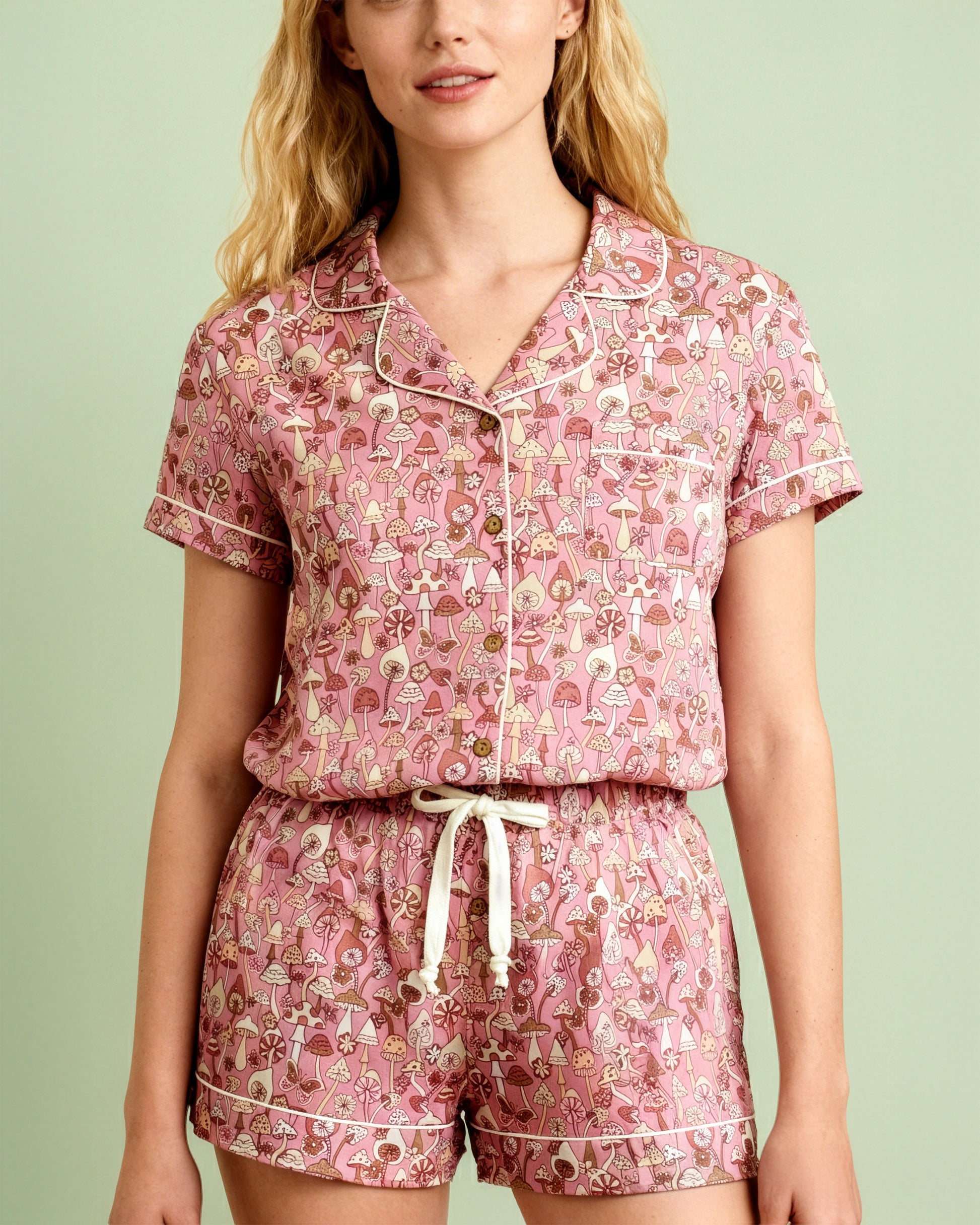 Soft, super-comfy, and effortlessly stylish. This set features a button-front notch collar shirt with pocket and matching drawstring shorts with cuffed hems. Perfect for lounging or gifting.