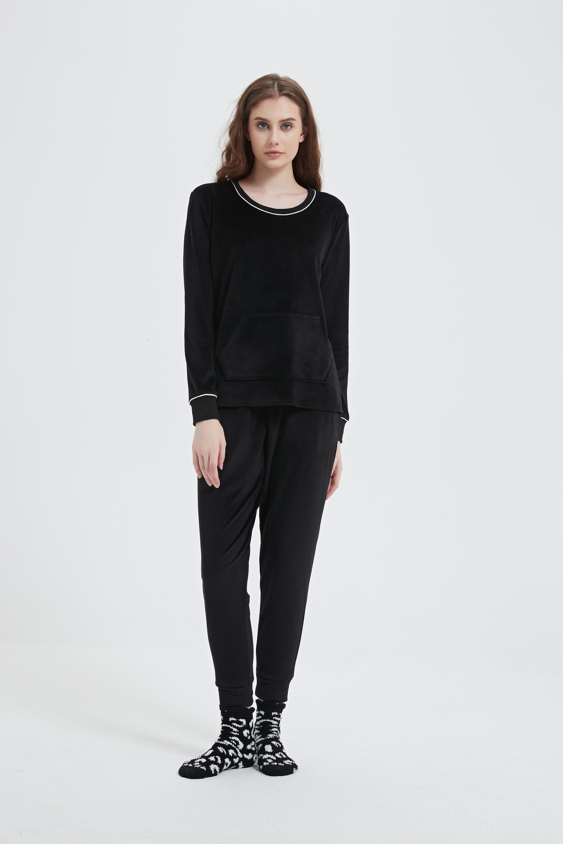 Plush velour cozy comfort women's jogger gift set with matching Chenille socks set. Soft and Luxurious feel all night long.
