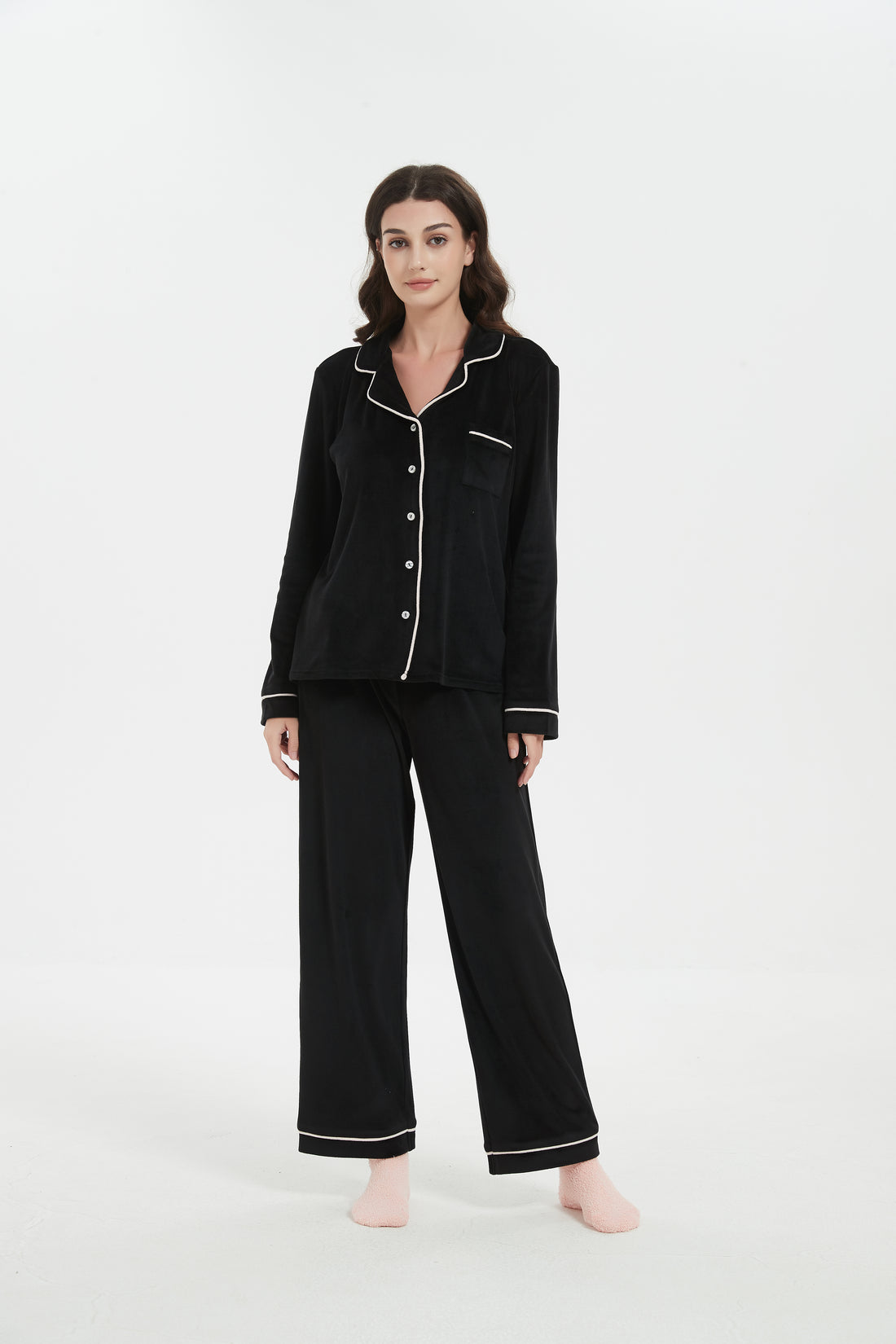 Velour Plush Pajama Set with Socks