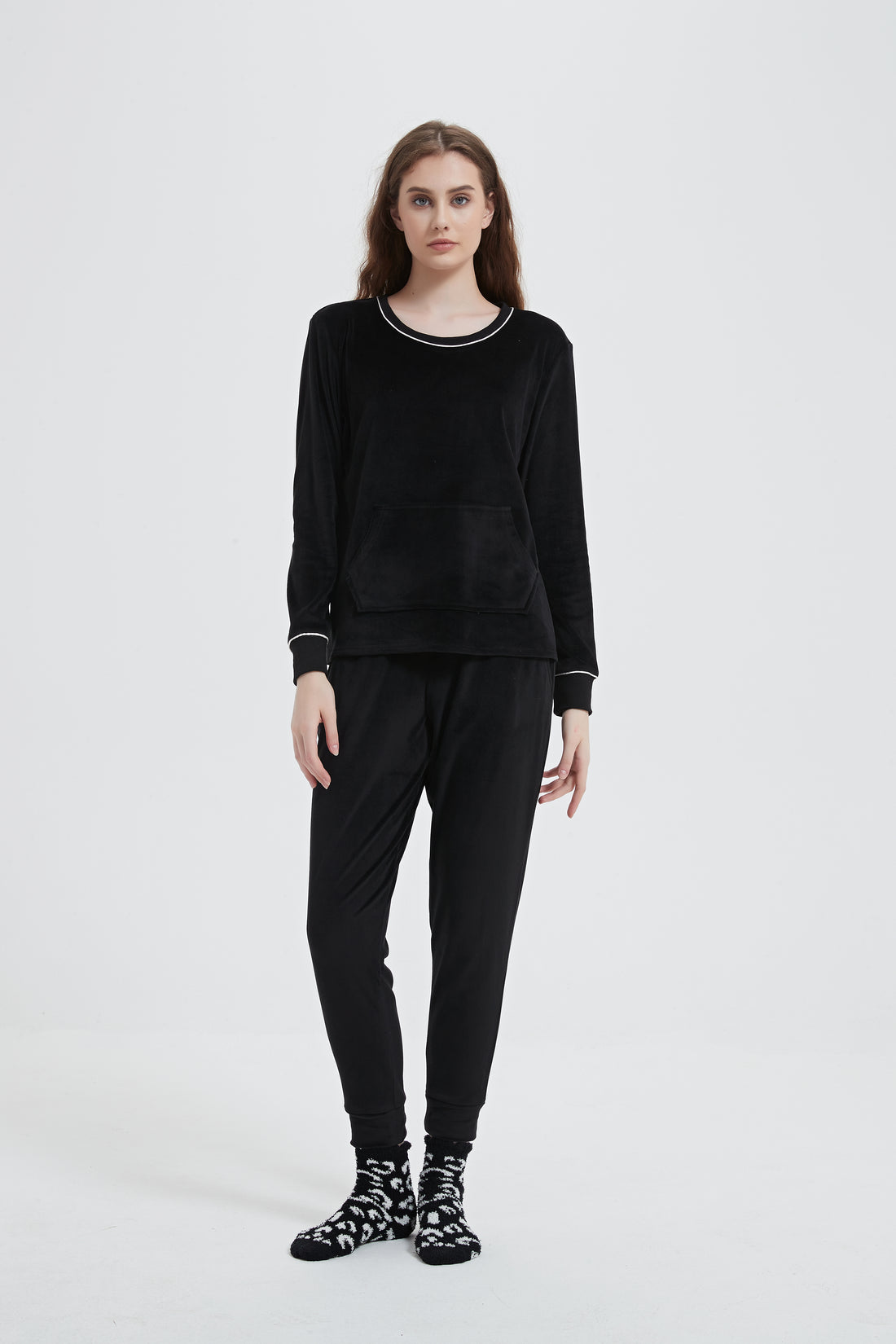 Velour Plush Jogger PJ Set with Socks